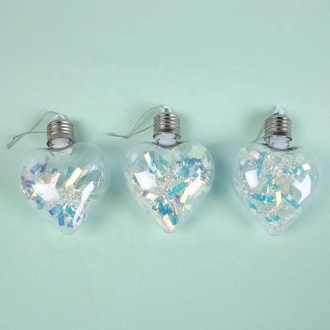 Boule suspendue LED en plastique incassable personnalisée de Noël Ampoule coeur clair Accessoires décoratifs Ornements de Noël